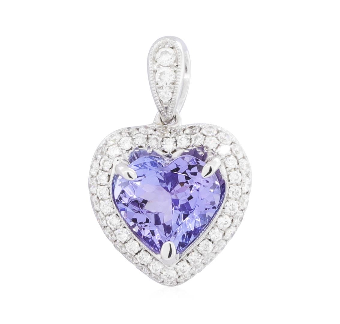 One pendant featuring: 18KT white gold weighing 3.2 grams containing one heart shaped tanzanite weighing 1.78ct and diamonds weighing 0.60ctw.