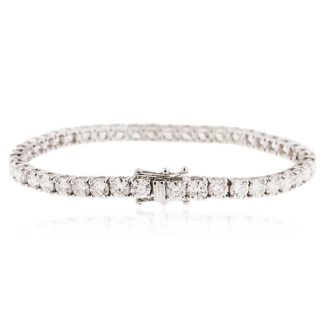 One electronically tested 18KT white gold ladies cast diamond tennis bracelet with a hidden box clasp with safety closer with a bright polish finish. Measurements: 7" in length Identified with markings of "750". Condition is new. Containing: Forty-Four prong set round brilliant cut diamonds, measuring 4.00 - 4.00 x 2.40mm (depth est.) approximate total weight of 44 Stones = 10.31ct. Clarity: SI-2 to I-1. Color: G - I, Cut is Good. All diamonds are graded in the mounting, unless otherwise stated. Total Weight of Diamonds 10.31ct. Total Weight of Tennis Bracelet 13.80 grams. GGL Appraised at $24,585.00.