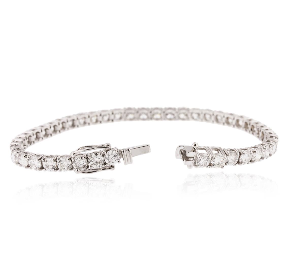 One electronically tested 18KT white gold ladies cast diamond tennis bracelet with a hidden box clasp with safety closer with a bright polish finish. Measurements: 7" in length Identified with markings of "750". Condition is new. Containing: Forty-Four prong set round brilliant cut diamonds, measuring 4.00 - 4.00 x 2.40mm (depth est.) approximate total weight of 44 Stones = 10.31ct. Clarity: SI-2 to I-1. Color: G - I, Cut is Good. All diamonds are graded in the mounting, unless otherwise stated. Total Weight of Diamonds 10.31ct. Total Weight of Tennis Bracelet 13.80 grams. GGL Appraised at $24,585.00.
