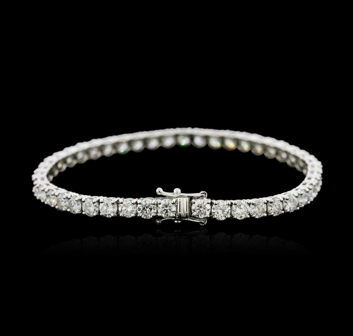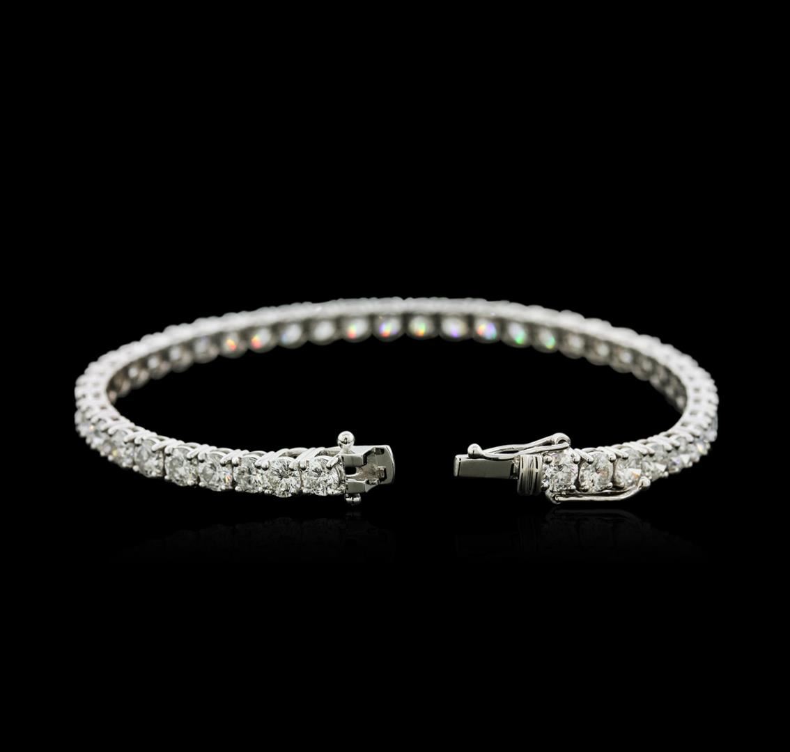 One electronically tested 18KT white gold ladies cast diamond tennis bracelet with a hidden box clasp with safety closer with a bright polish finish. Measurements: 7" in length Identified with markings of "750". Condition is new. Containing: Forty-Four prong set round brilliant cut diamonds, measuring 4.00 - 4.00 x 2.40mm (depth est.) approximate total weight of 44 Stones = 10.31ct. Clarity: SI-2 to I-1. Color: G - I, Cut is Good. All diamonds are graded in the mounting, unless otherwise stated. Total Weight of Diamonds 10.31ct. Total Weight of Tennis Bracelet 13.80 grams. GGL Appraised.