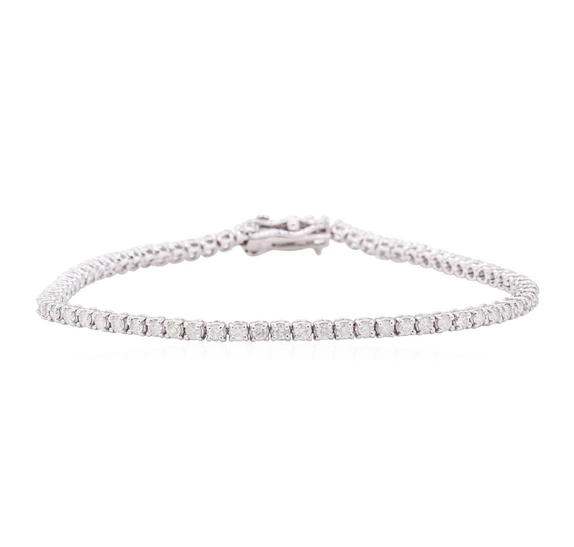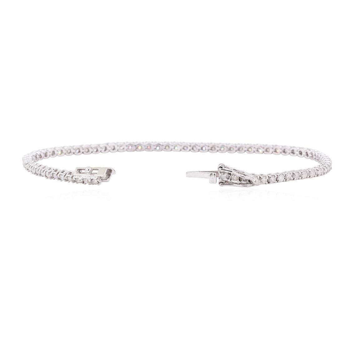 One electronically tested 18KT white gold lady's combination cast & assembled fashion tennis bracelet with a tongue clasp with double foldover safeties with a bright polish finish. The featured lady's bracelet measures approximately seven inches in length. Identified with markings of '750'. Condition is new, good workmanship. Containing: Seventy prong set round brilliant cut diamonds, measuring 2.05 - 2.00 x 1.26mm (depth est.) approximate total weight of 70 Stones = 2.25ct. Graded in the setting. Color H - I, Clarity I-1 to I-2, Cut Good. Total Weight of Diamonds 2.25ct. Total Weight of Bracelet 7.80gm. GAS Appraised.