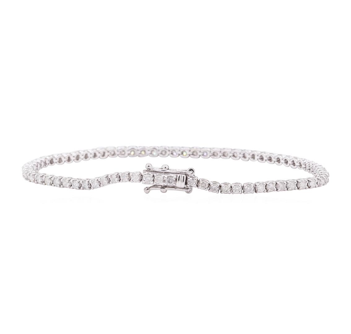 One electronically tested 18KT white gold lady's combination cast & assembled fashion tennis bracelet with a tongue clasp with double foldover safeties with a bright polish finish. The featured lady's bracelet measures approximately seven inches in length. Identified with markings of '750'. Condition is new, good workmanship. Containing: Seventy prong set round brilliant cut diamonds, measuring 2.05 - 2.00 x 1.26mm (depth est.) approximate total weight of 70 Stones = 2.25ct. Graded in the setting. Color H - I, Clarity I-1 to I-2, Cut Good. Total Weight of Diamonds 2.25ct. Total Weight of Bracelet 7.80gm. GAS Appraised.