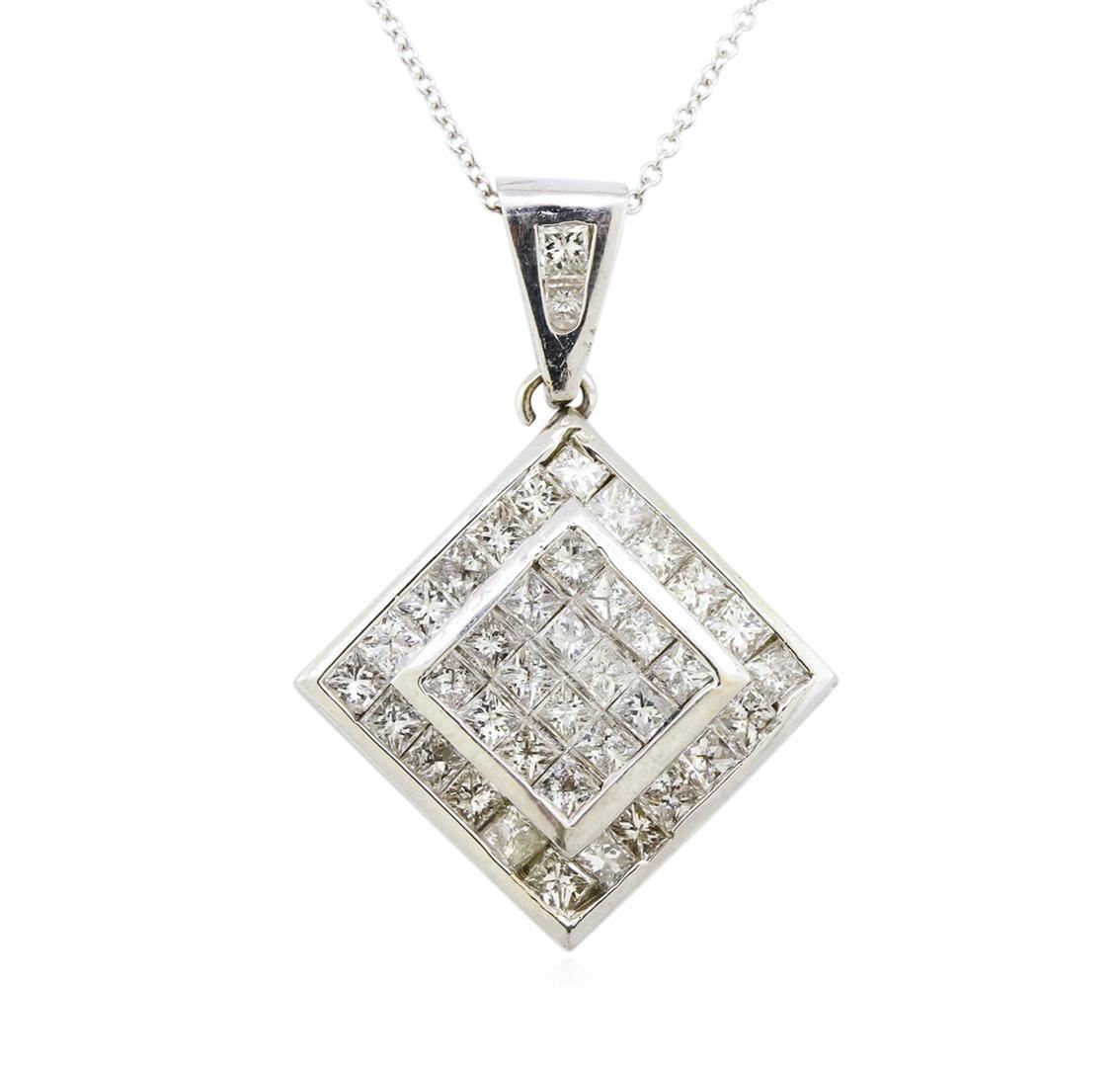 One pendant featuring: 18KT White Gold with a total weight of 8.80 grams and (36) princess cut diamonds with a total weight of 3.10ctw.