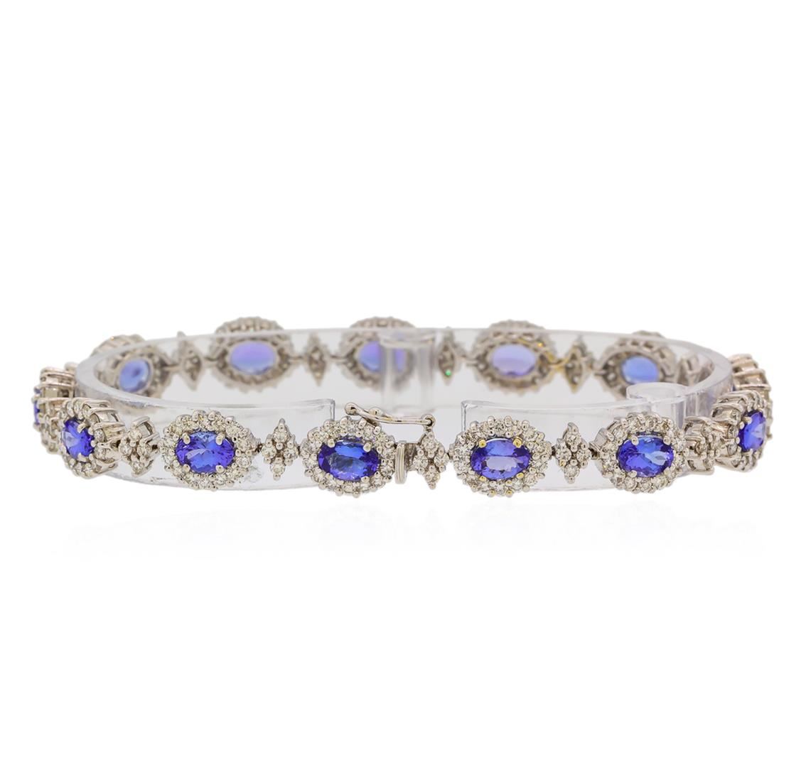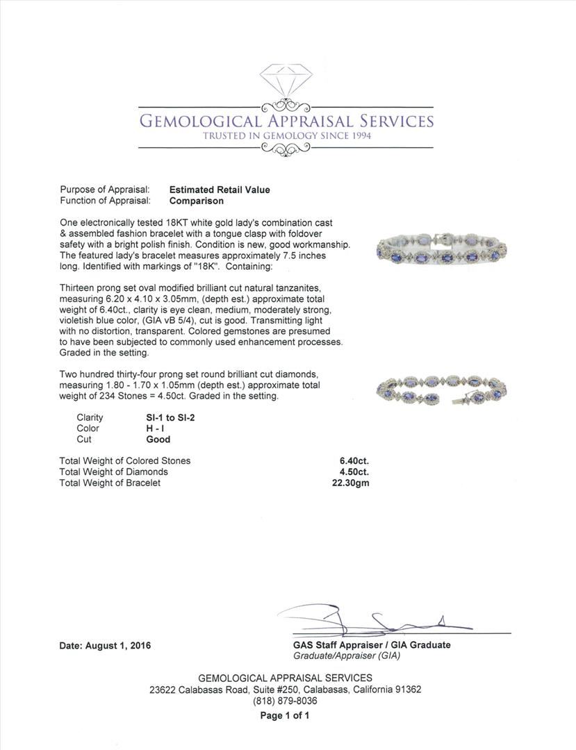 One electronically tested 18KT white gold lady's combination cast & assembled fashion bracelet with a tongue clasp with foldover safety with a bright polish finish. The featured lady's bracelet measures approximately 7.5 inches long. Identified with marki GAS Appraised.