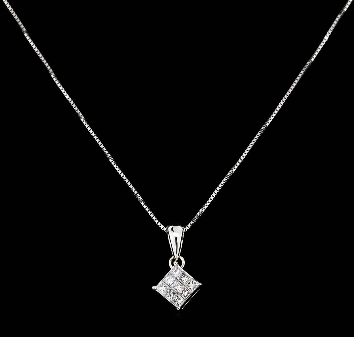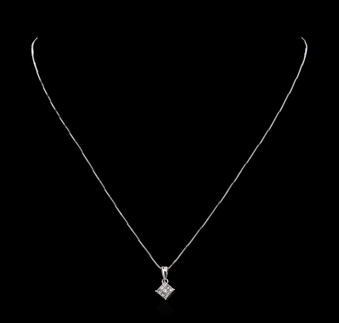 One Ladies pendant with chain featuring: 18KT white gold weighing 2.2 grams containing diamonds weighing 0.20ctw. The 0.7mm box chain measures approximately seventeen inches in length.