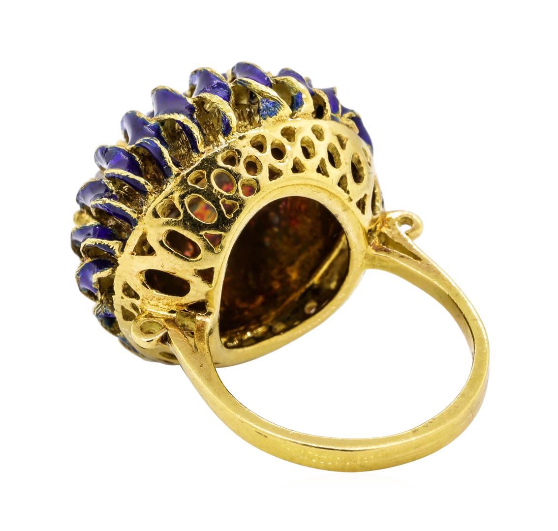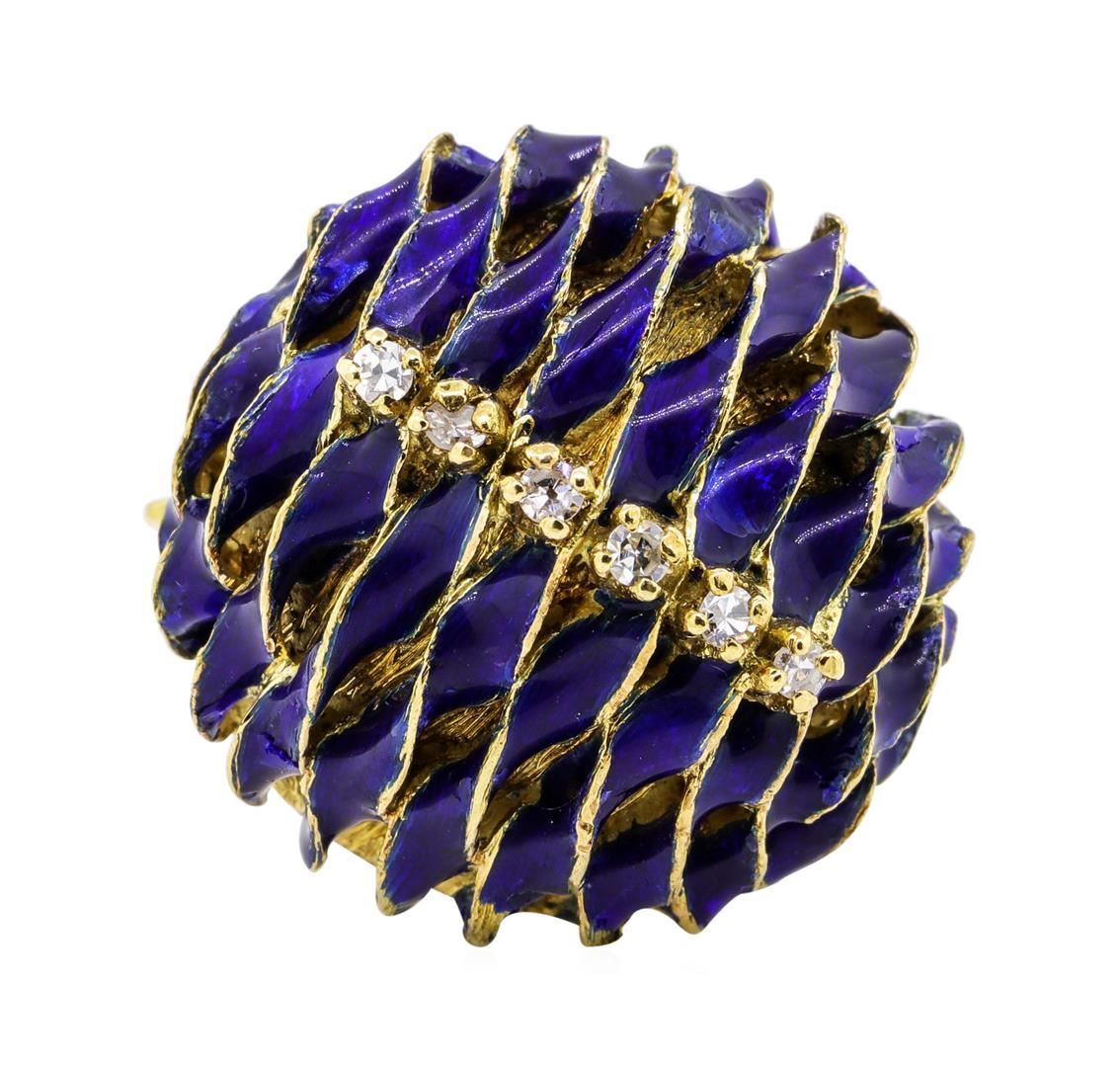 One ladies ring featuring: 18KT yellow gold weighing 18.0 grams containing diamonds weighing 0.18ctw. The ring is a size 7.