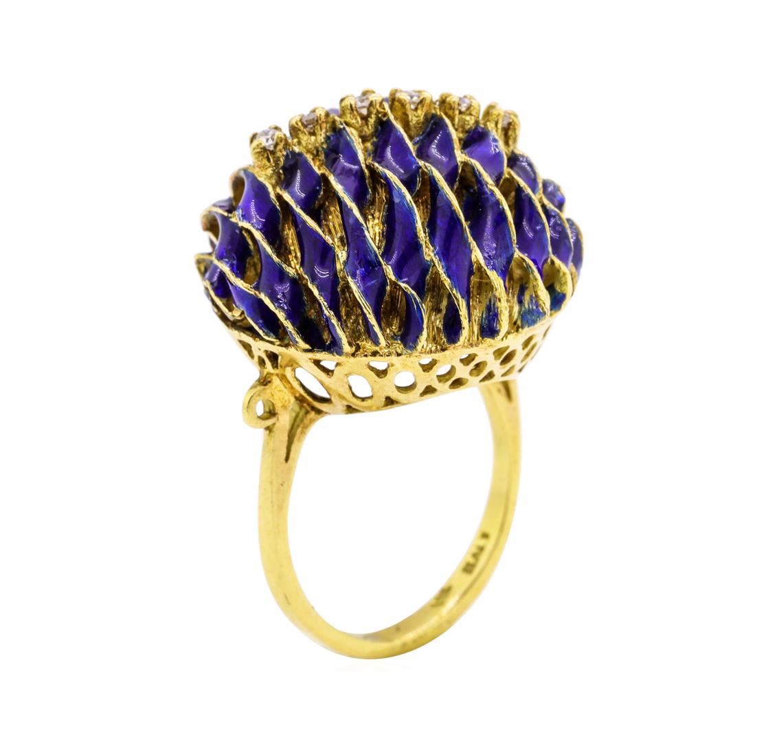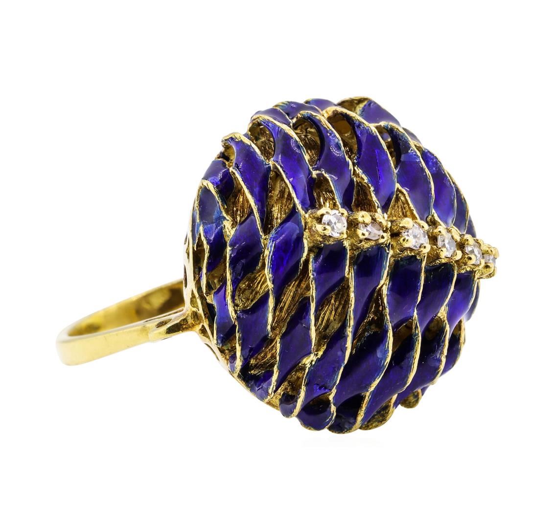 18KT Yellow Gold 0.18 ctw Diamond and Blue Enamel Ring