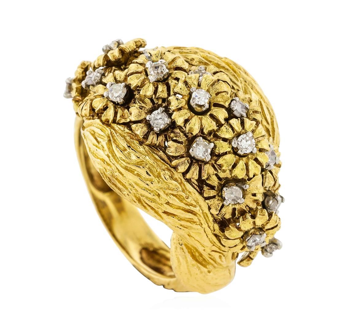 One 18KT Yellow Gold 0.50ctw Diamond Ring with a total weight of 13.5 grams. Diamonds with a total weight of 0.50cts. GGA Appraised.