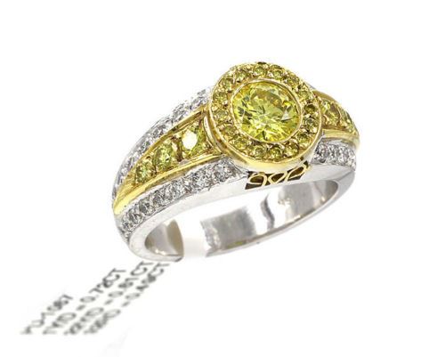18KT Yellow Gold 1.82 ctw Fancy Yellow Round Cut Diamond Engagement Ring