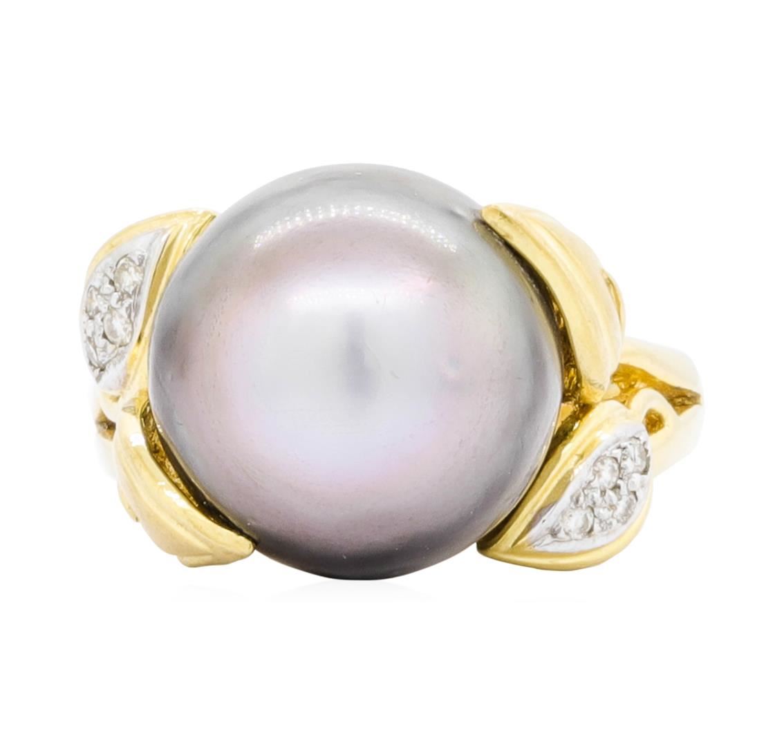 18KT Yellow Gold 13.20mm Tahitian Pearl and Diamond Ring