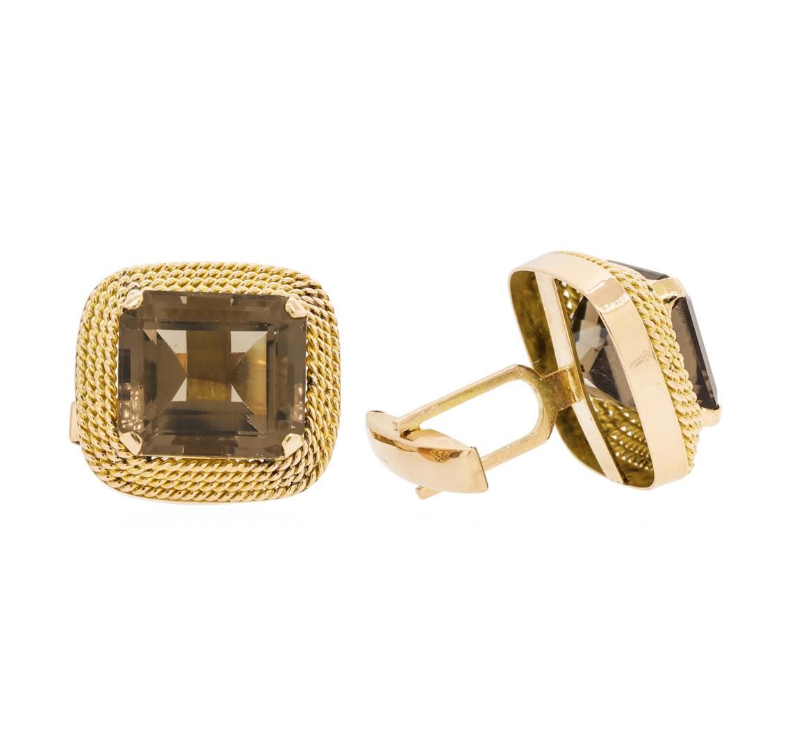 One pair of cufflinks featuring: 18KT yellow gold weighing 16.0 grams containing two smoky quartzes weighing 20.00ctw.