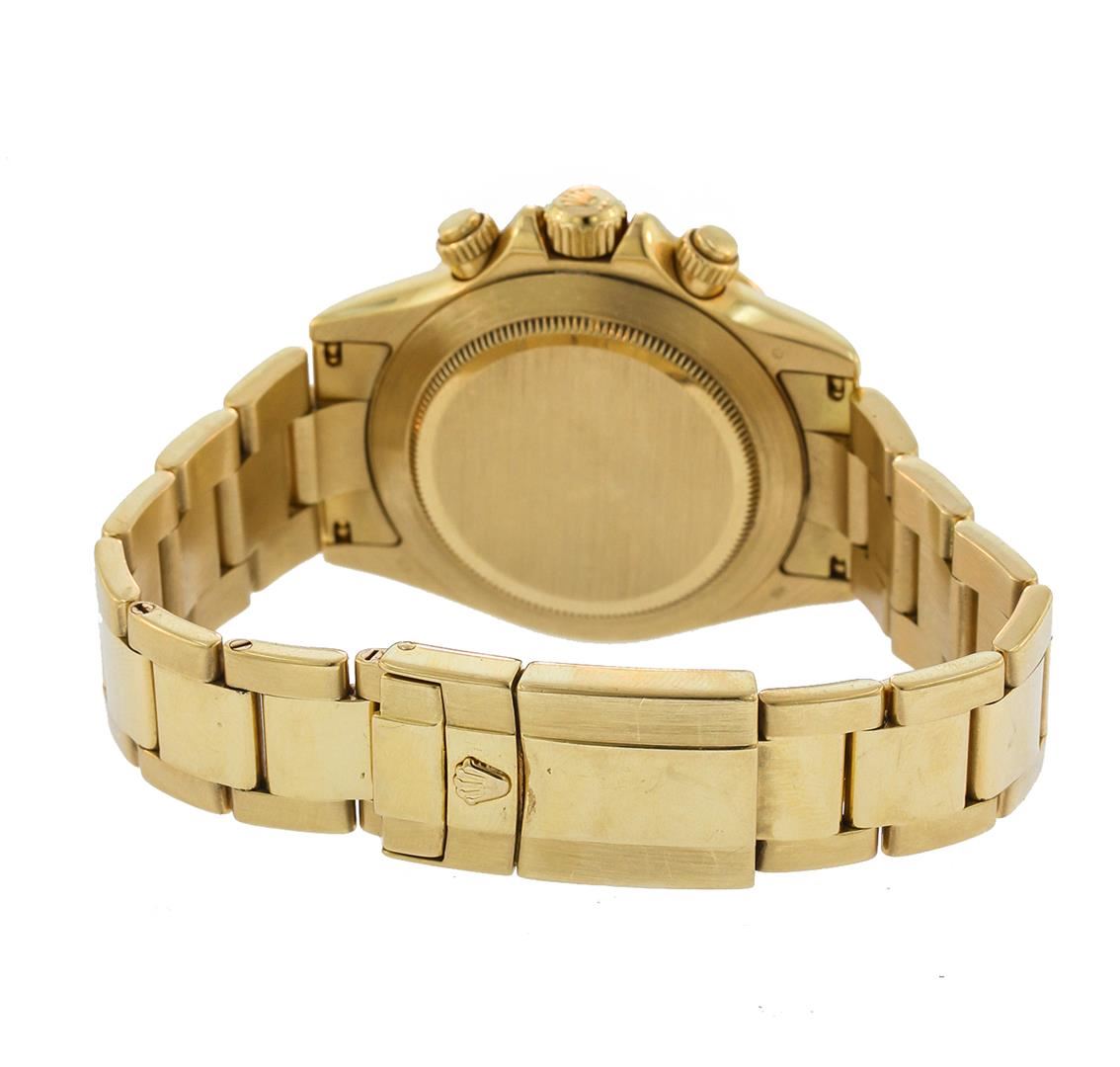 Gent's 18K Yellow Gold Rolex Daytona Cosmograph # 116528. Champagne Paul Newman Dial with Baton Hour Markers, Black Chronograph Subdials. 18K Yellow Gold Oyster Flip lock Bracelet with Clasp.