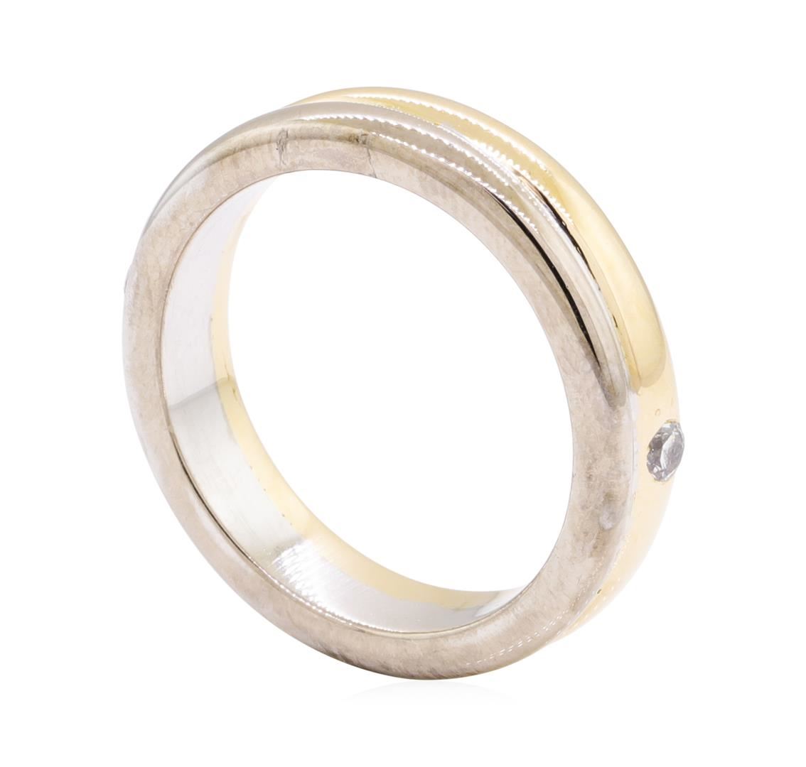 One ring featuring: 18KT yellow and white gold weighing 9.3 grams containing diamonds weighing 0.10ctw. The ring is a size 7.25.