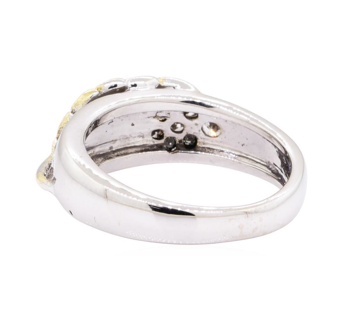 One leaf overlay ring featuring: 18KT yellow and white gold 6.8 grams containing diamonds weighing 0.40ctw. The ring is a size 6.5.