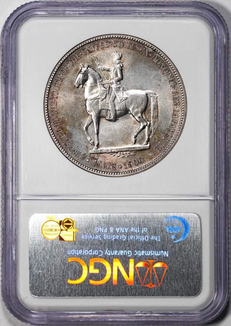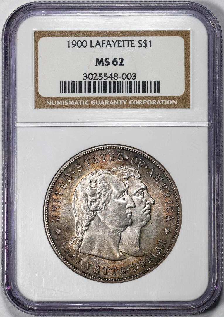 One 1900 $1 Lafayette Commemorative Silver Dollar Coin NGC MS62. NGC Certified.