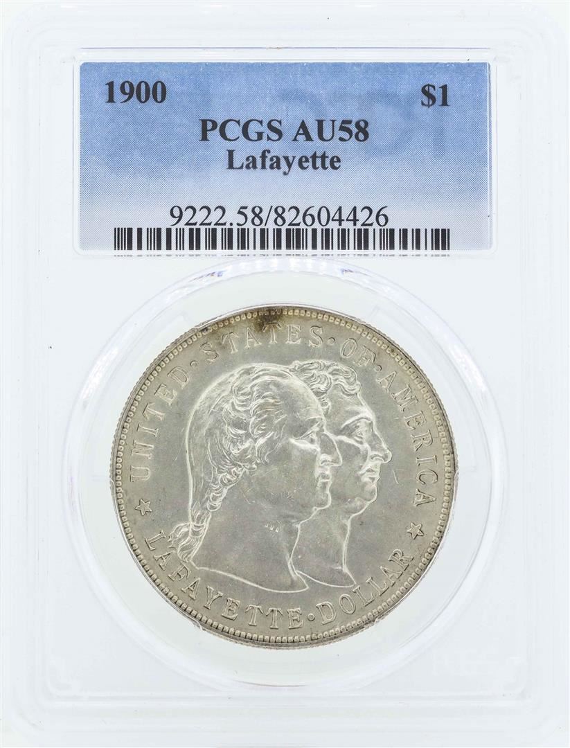 One 1900 $1 Lafayette Commemorative Silver Dollar Coin PCGS AU58. PCGS Graded.