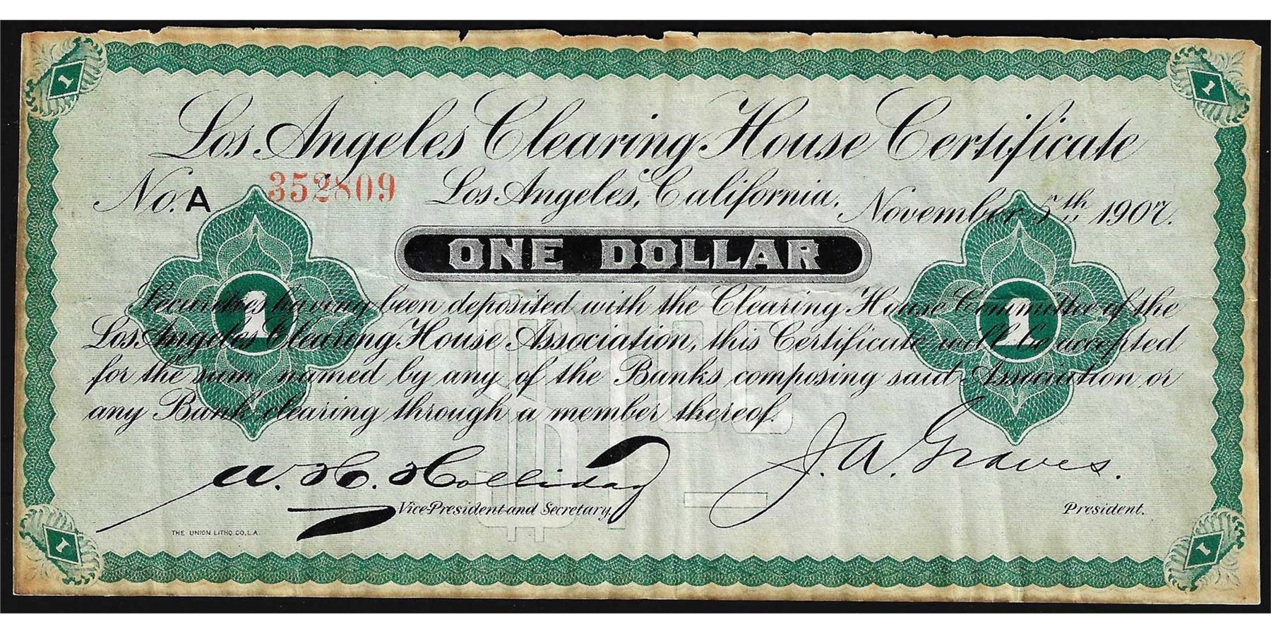 One 1900 $1 Los Angeles Clearing House Certificate.