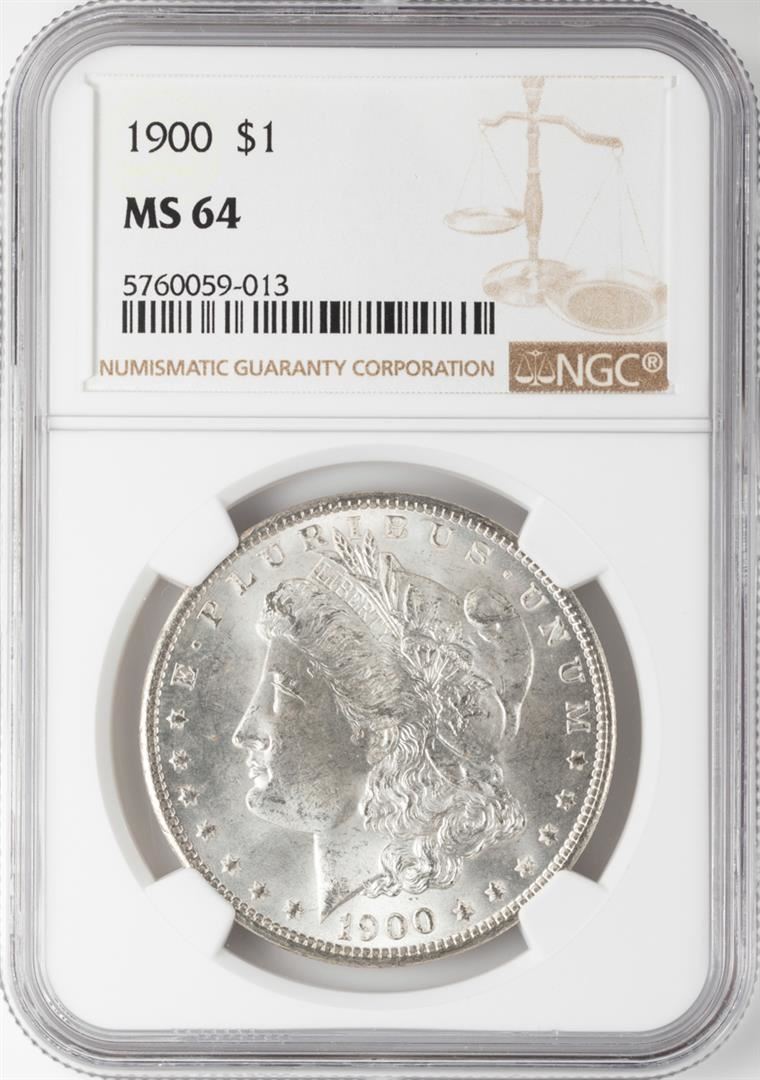 One 1900 $1 Morgan Silver Dollar Coin NGC MS64. NGC Certified.