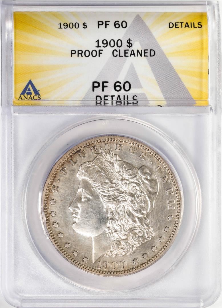 One 1900 $1 Proof Morgan Silver Dollar Coin ANACS PF60 Details. ANACS Certified.