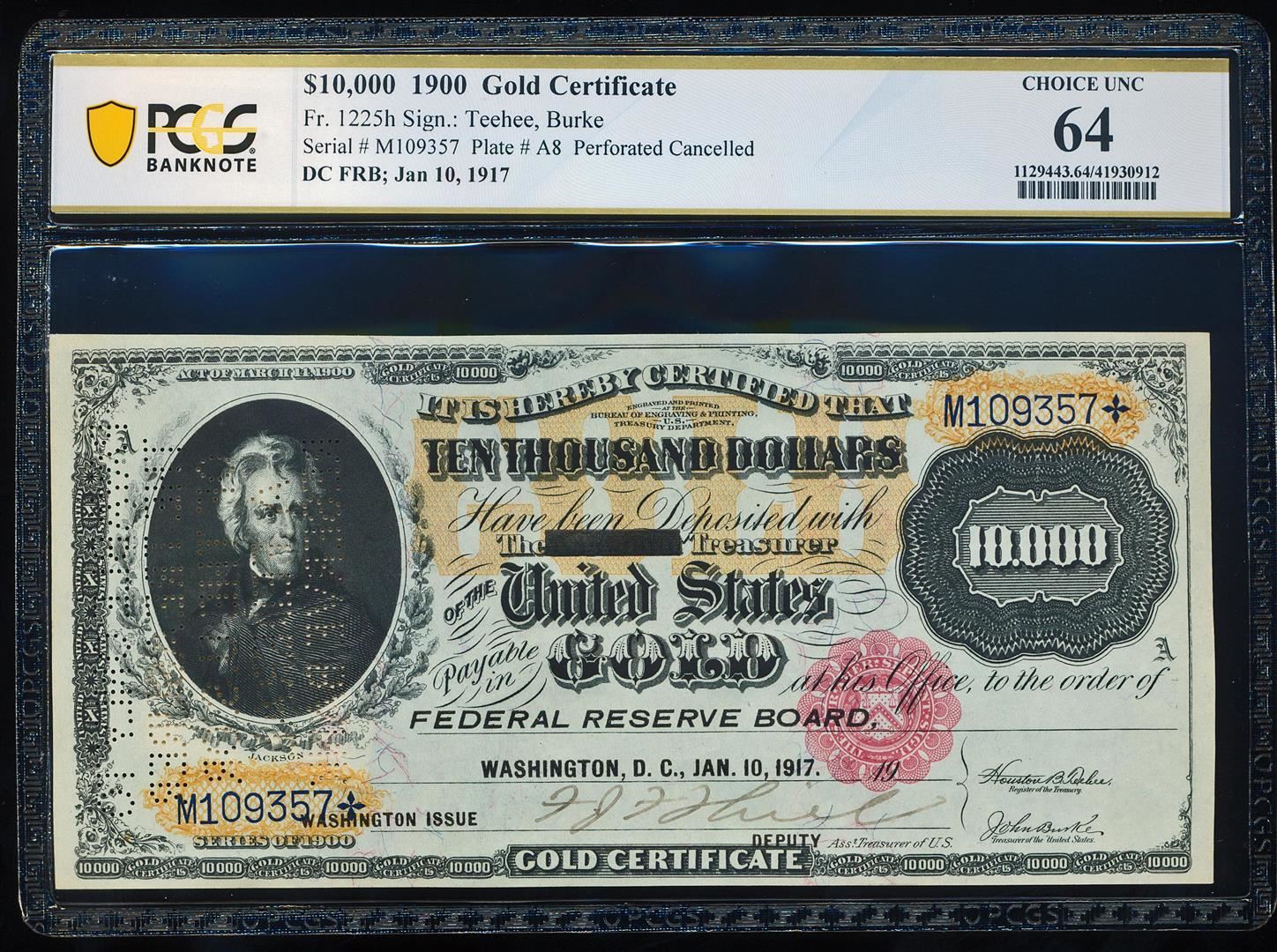 1900 $10,000 Gold Certificate Note Fr.1225h PCGS Choice Uncirculated 64