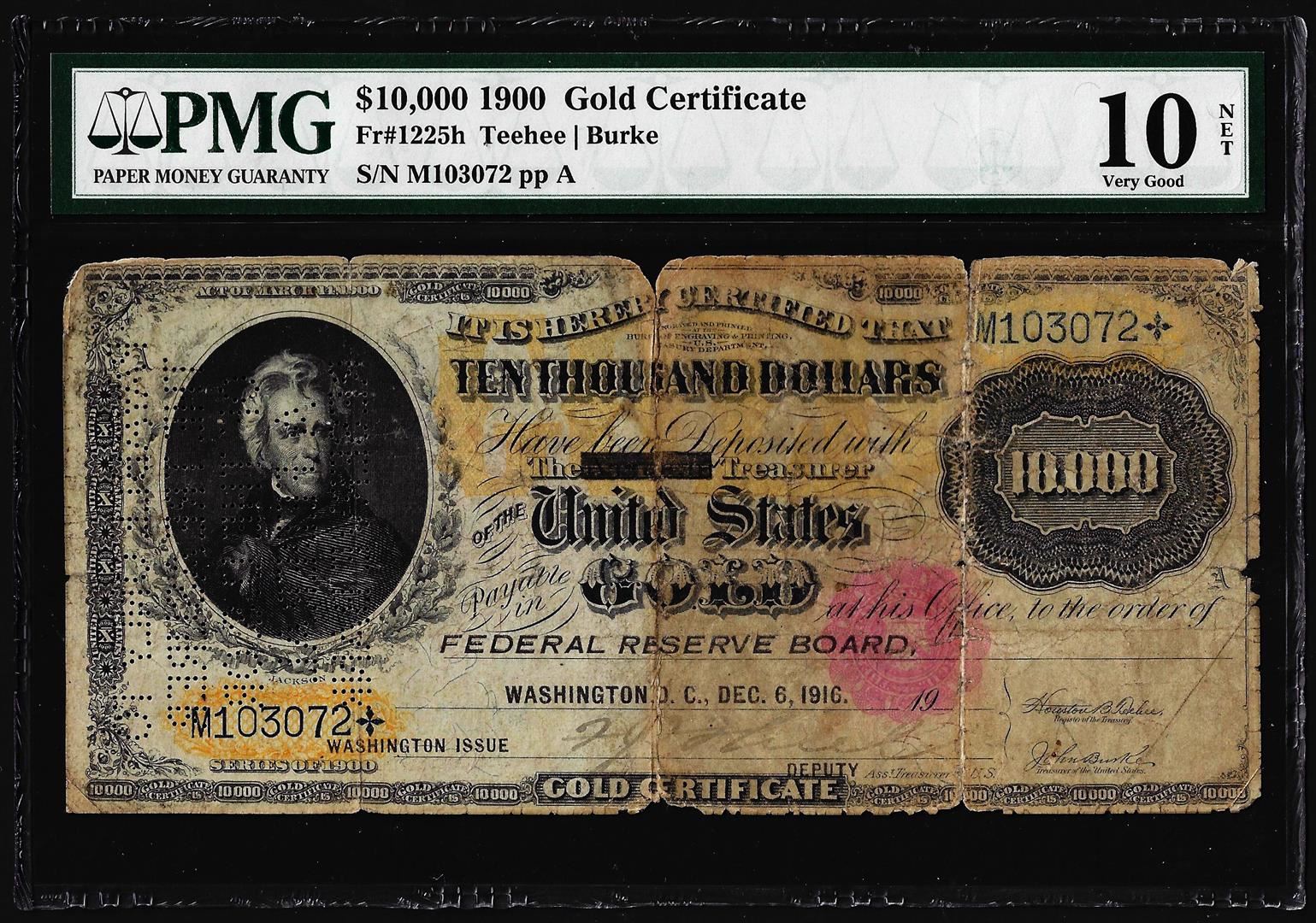 1900 $10,000 Gold Certificate Note Fr.1225h PMG Very Good 10 Net