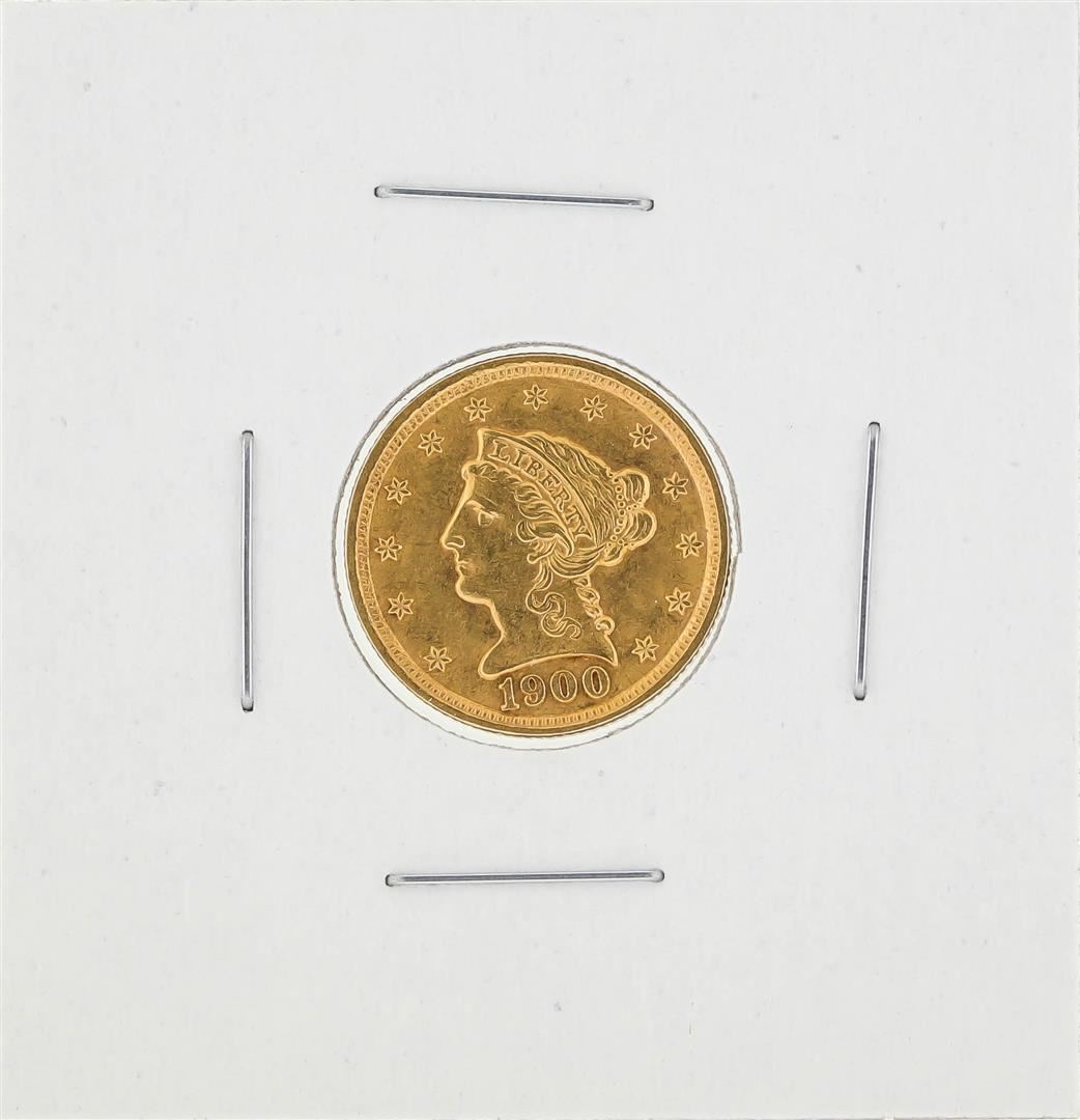 One 1900 $2 1/2 Liberty Head Quarter Eagle Gold Coin.