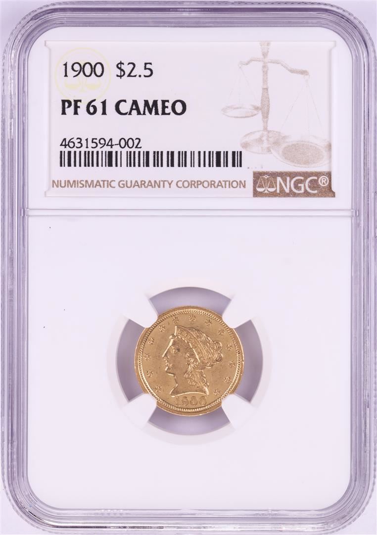 One 1900 $2 1/2 Proof Liberty Head Quarter Eagle Gold NGC PF61 Cameo. NGC Certified.