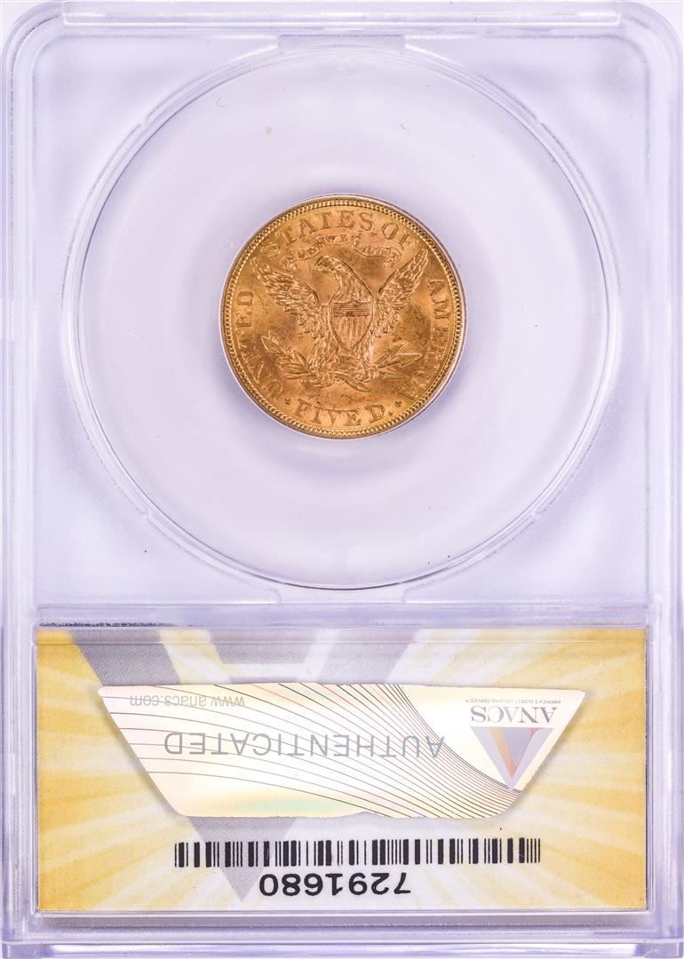 One 1900 $5 Liberty Head Half Eagle Gold Coin ANACS MS63. ANACS Certified.