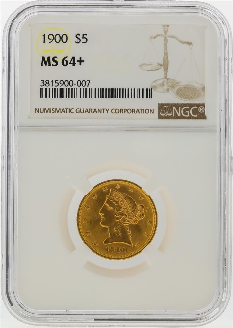 One 1900 $5 Liberty Head Half Eagle Gold Coin NGC MS64+. NGC Certified.