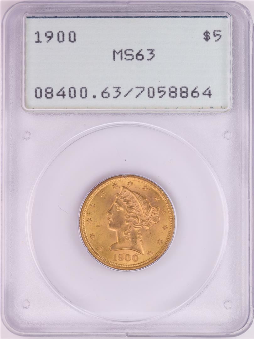 One 1900 $5 Liberty Head Half Eagle Gold Coin PCGS MS63 Old Green Rattler. PCGS Graded.