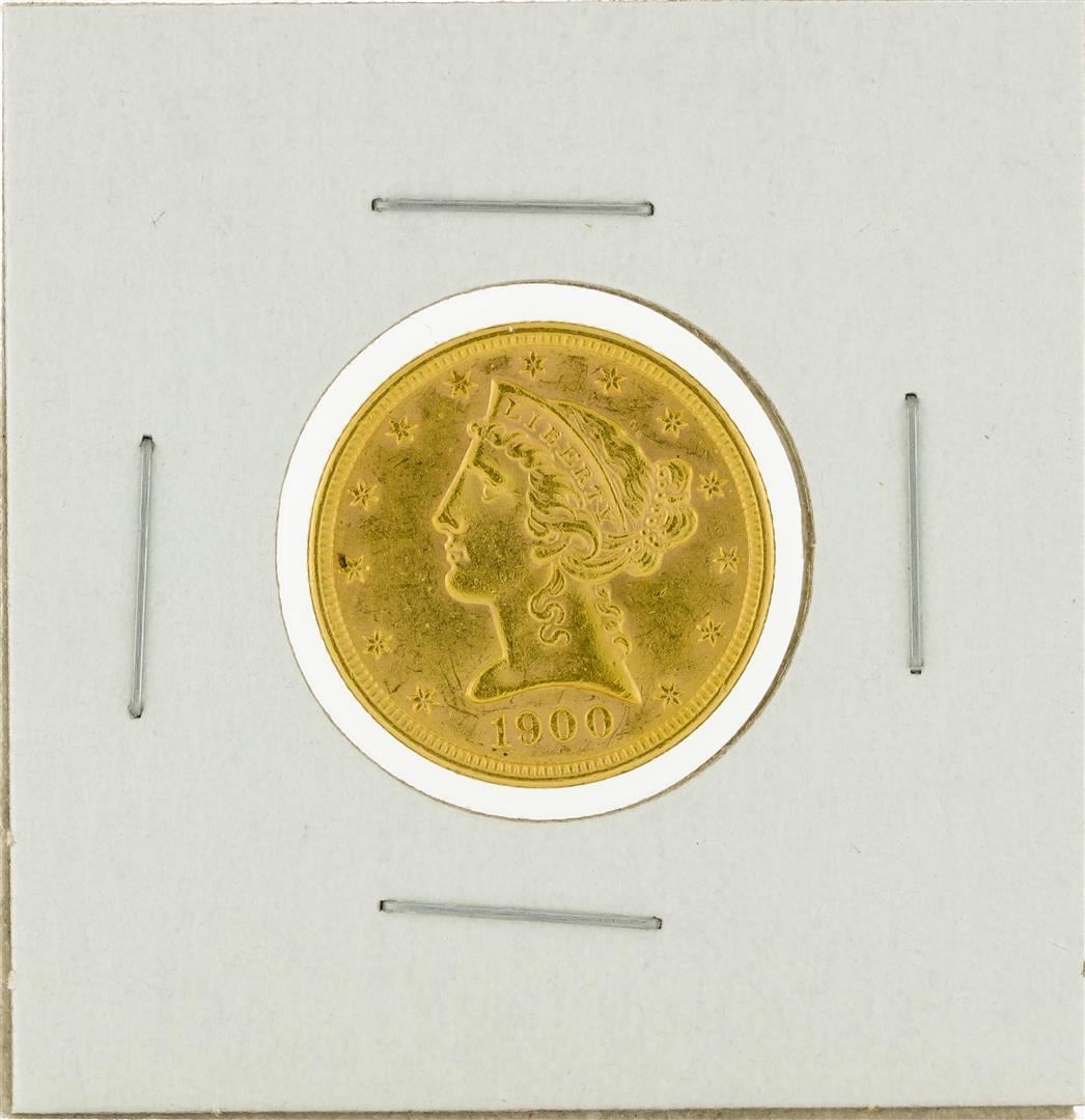 One 1900 $5 Liberty Head Half Eagle Gold Coin.