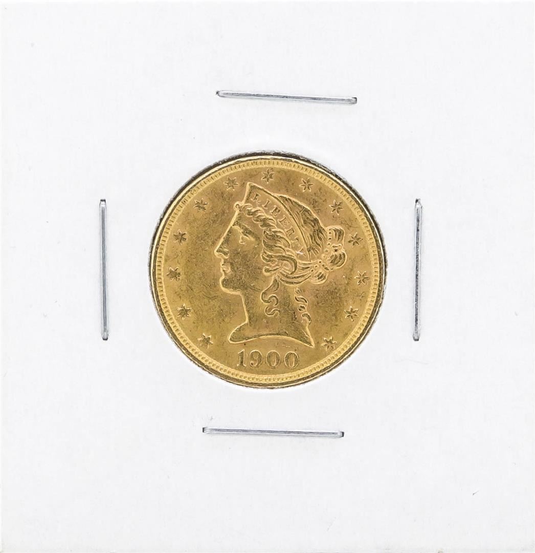 One 1900 $5 Liberty Head Half Eagle Gold Coin.