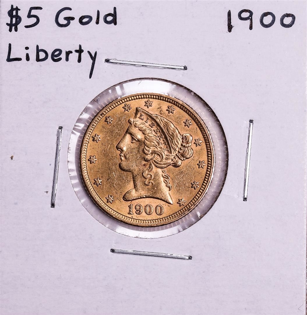 One 1900 $5 Liberty Head Half Eagle Gold Coin.