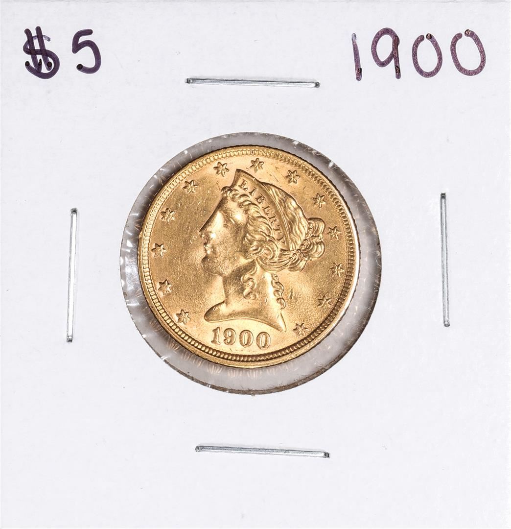 One 1900 $5 Liberty Head Half Eagle Gold Coin.