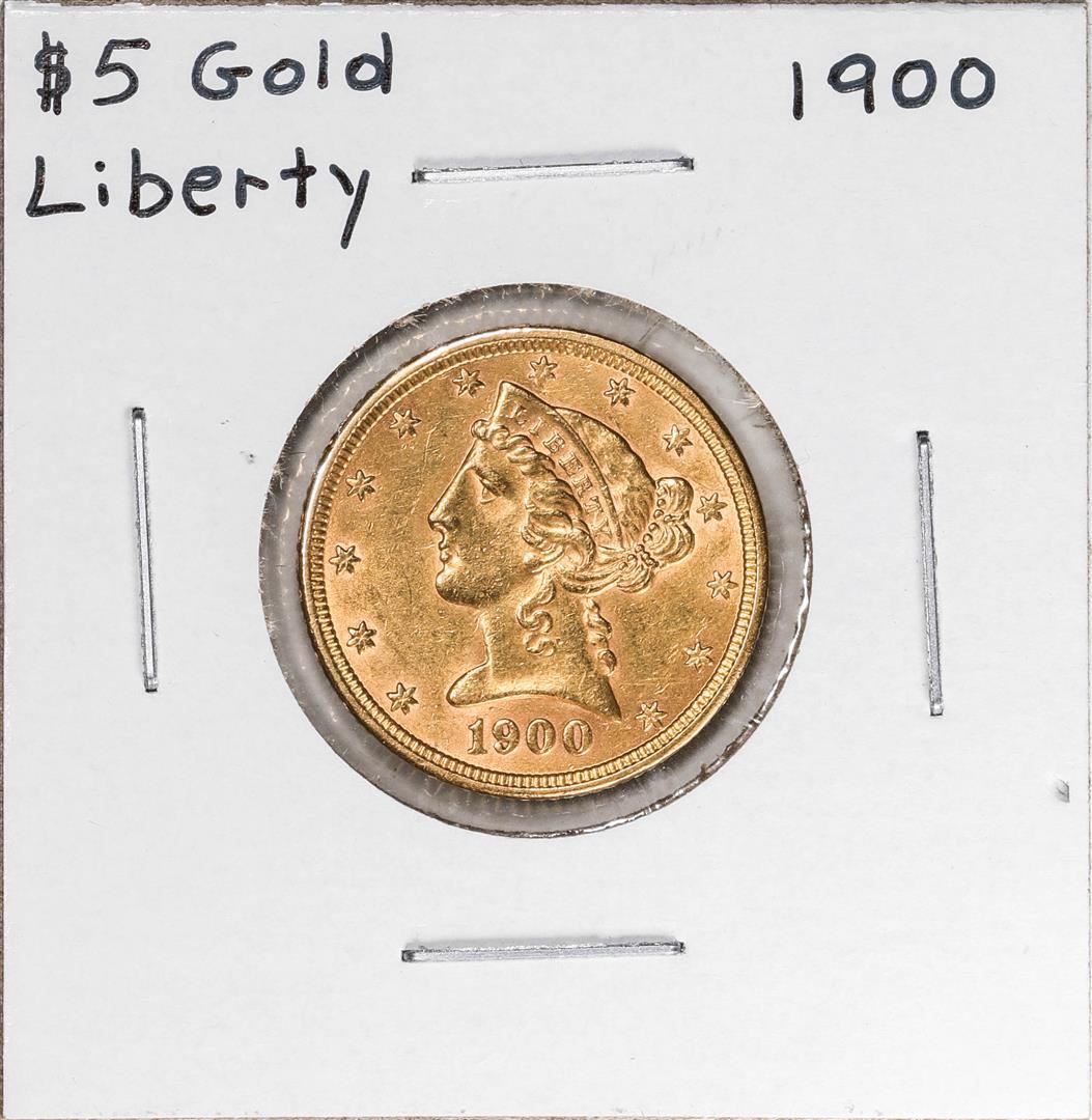 One 1900 $5 Liberty Head Half Eagle Gold Coin.