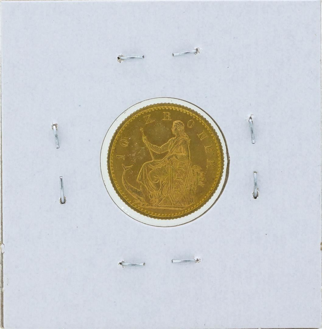 One 1900 Denmark 10 Kronor Gold Coin.
