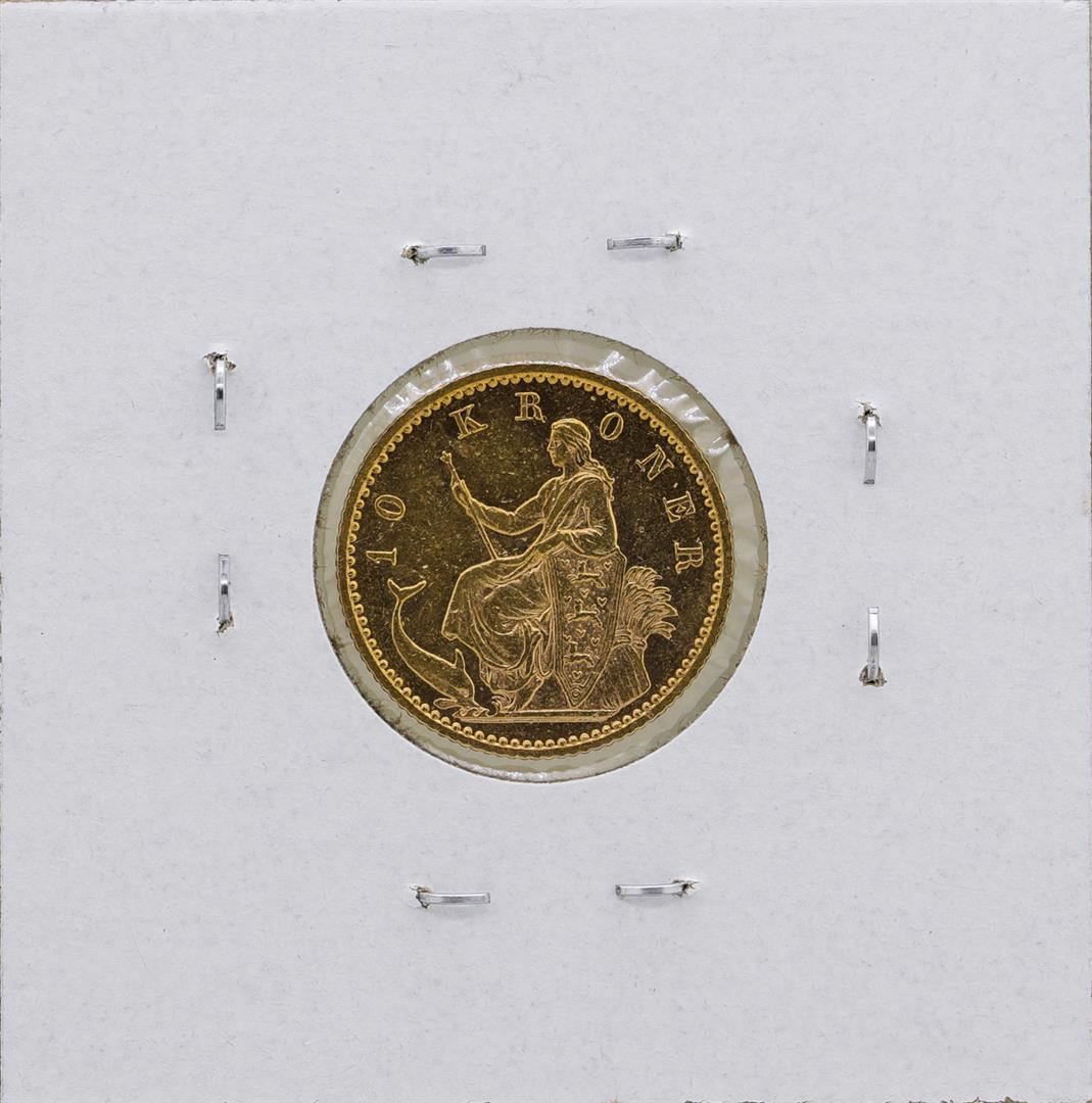 One 1900 Denmark Christian IX 10 Kroner Mermaid Gold Coin.