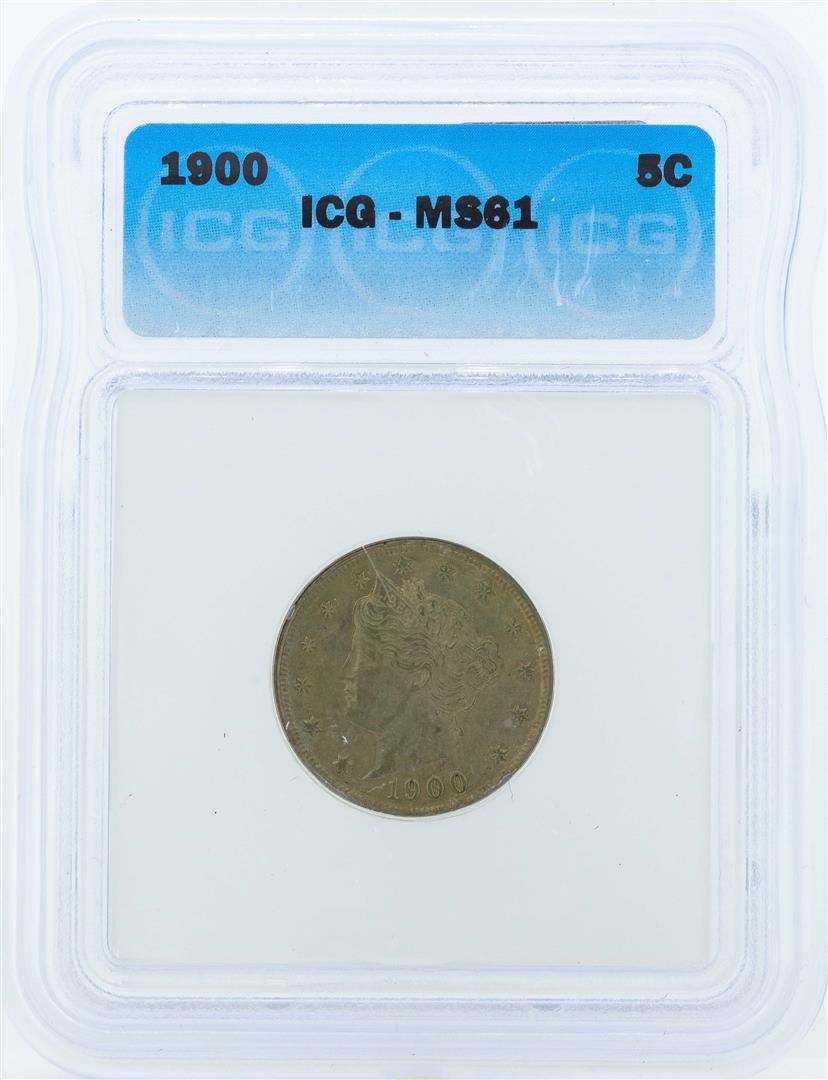 One 1900 Liberty Head Nickel Coin ICG MS61. ICG Certified.