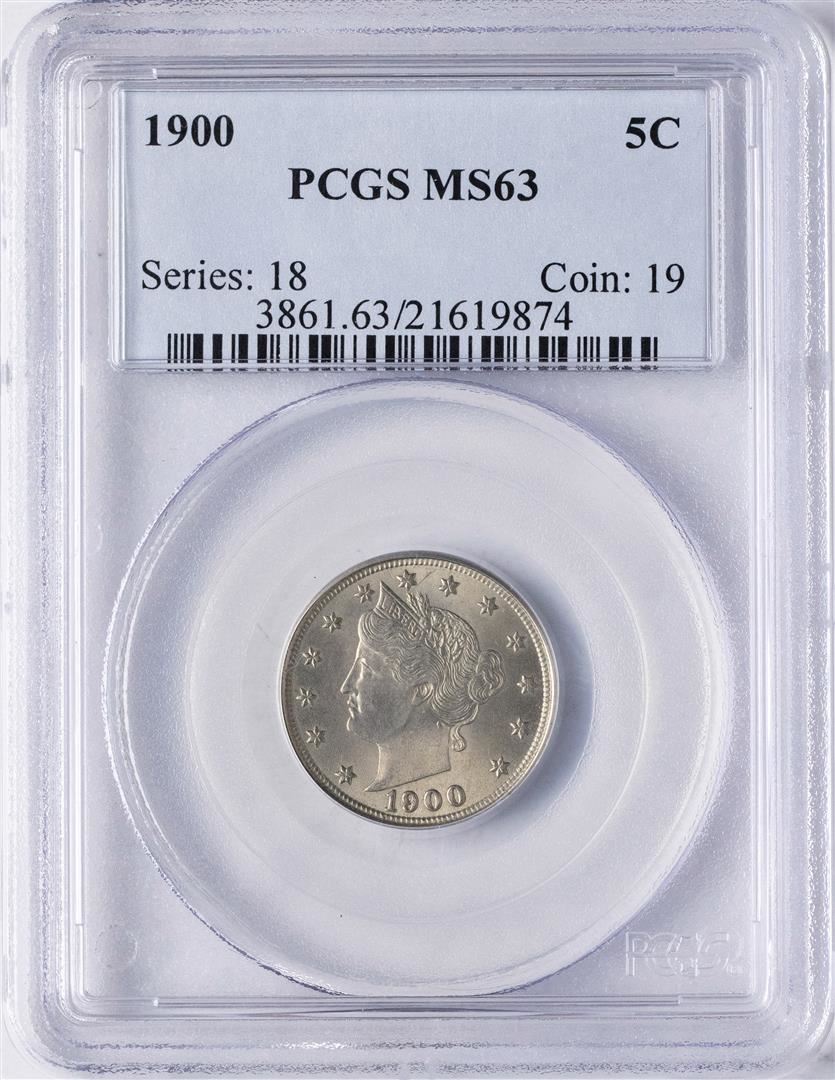 One 1900 Liberty Nickel Coin PCGS MS63. PCGS Graded.