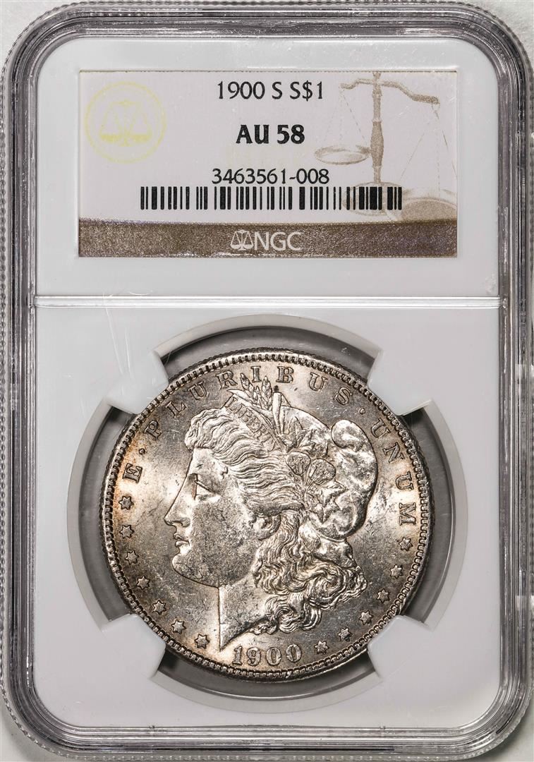 One 1900-S $1 Morgan Silver Dollar Coin NGC AU58. NGC Certified.