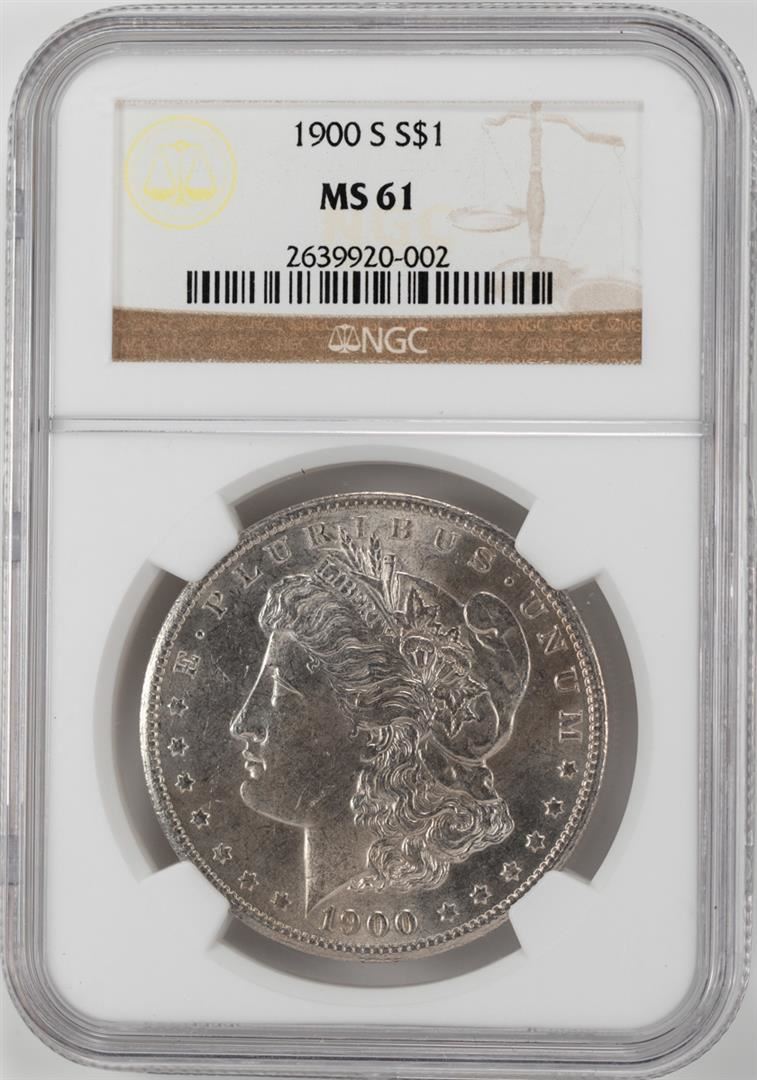 One 1900-S $1 Morgan Silver Dollar Coin NGC MS61. NGC Certified.
