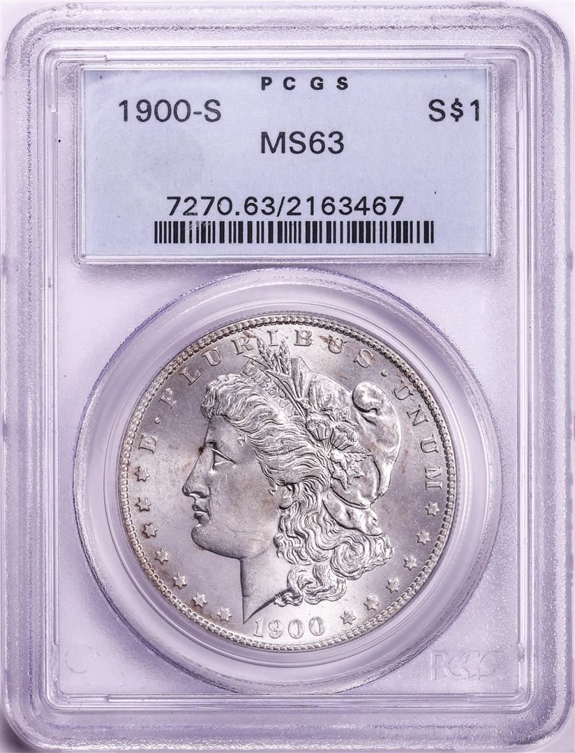 One 1900-S $1 Morgan Silver Dollar Coin PCGS MS63 Old Holder. PCGS Graded.