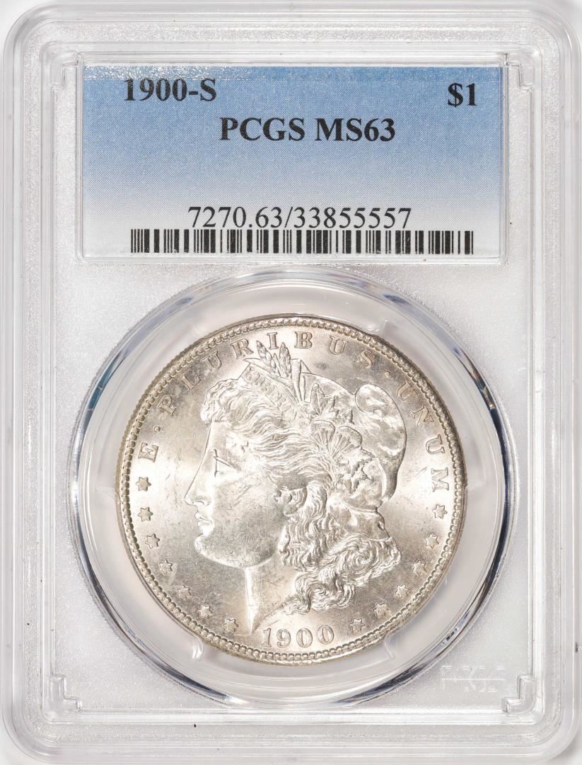 One 1900-S $1 Morgan Silver Dollar Coin PCGS MS63. PCGS Graded.