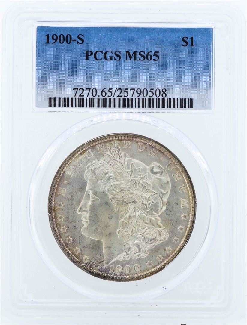 One 1900-S $1 Morgan Silver Dollar Coin PCGS MS65. PCGS Graded.