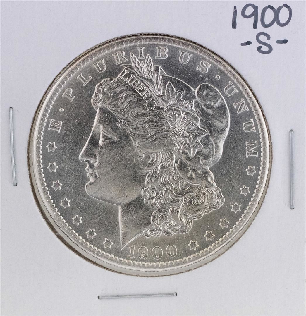 One 1900-S $1 Morgan Silver Dollar Coin.