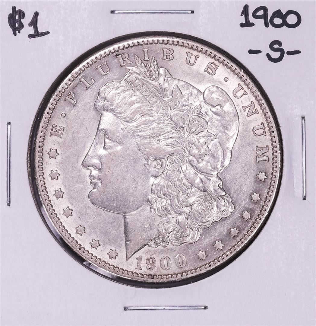 One 1900-S $1 Morgan Silver Dollar Coin.