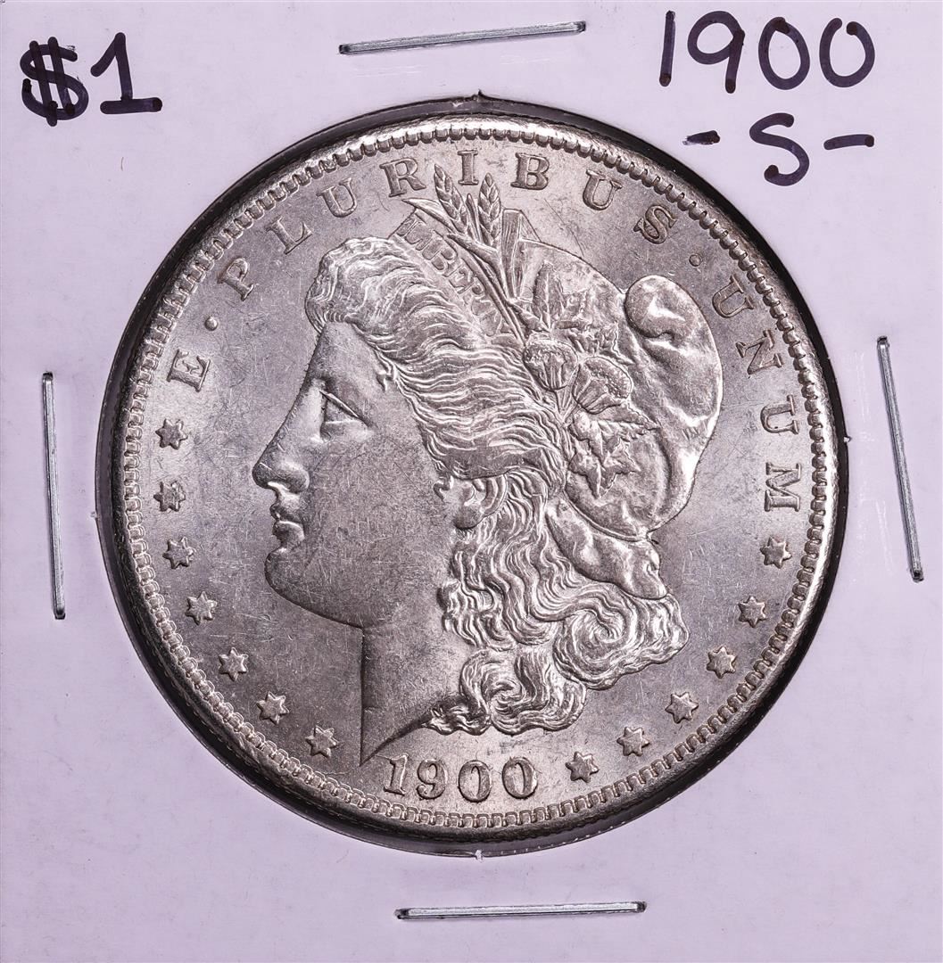 One 1900-S $1 Morgan Silver Dollar Coin.