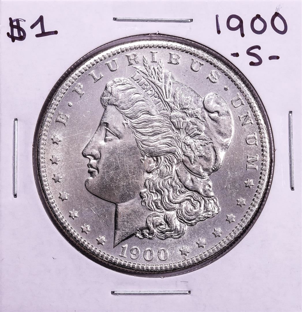 One 1900-S $1 Morgan Silver Dollar Coin.