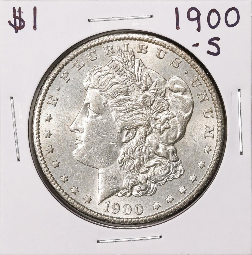 One 1900-S $1 Morgan Silver Dollar Coin.