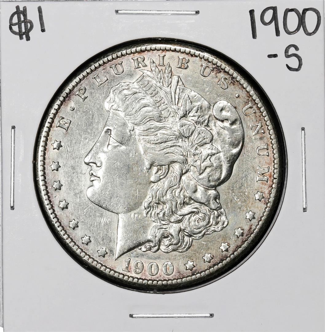 One 1900-S $1 Morgan Silver Dollar Coin.